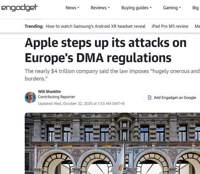 来源:环球网 【环球网科技综合报道】10月22日消息,据engadget援引彭博社报道称,苹果在卢森堡普通法院对欧盟 《数字市场法案》(DMA)提出了批评,称其带来了"极其繁重且具有侵扰性的负担"。这场争端不仅 涉及法律层面的辩论,还可能对苹果在欧洲的业务和市场策略产生深远影响。 苹果公司律师丹尼尔·比尔德在法庭上表示,DMA 法规对苹果构成了反消费者、反隐私的阻碍。该公司 在 9 月份的一篇博客文章中指出,DMA 显然对市场没有帮助,反而让在欧洲做生意变得更加困难。 苹果方面还声称,DMA 导致其多项功能延迟发布,包括 AirPods 实时翻译、macOS 中的 iPhone 镜像以 及地图中的"访问地点"和"首选路线"功能。该公司于 9 月要求欧盟委员会废除该法律,但欧盟委员会不 仅拒绝了这一要求,还要求苹果公司停止对其提出质疑。 欧盟发言人托马斯·雷尼尔表示,自 DMA 生效以来,苹果公司一直在对其提出质疑,但欧盟委员会"绝 对无意"废除该法律。 据彭博社报道,苹果公司正从三个方面挑战 DMA:首先,DMA 要求竞争对手的硬件(如耳机和智能 手表)必须与 iPhone 兼容,苹果声称这存在安全风险;其次 ...