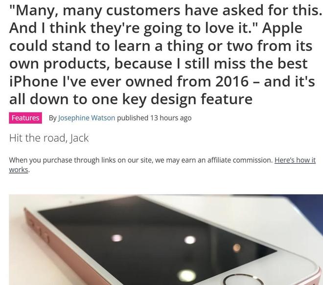 有网友甚至在社交平台留言称,"我毫不夸张地说,iPhone SE(2016)是终极版的iPhone。它不仅回应 了用户对智能手机尺寸不断增大的真实反馈,而且还将当时许多创新技术融入到价格亲民、便于携带的 机身中。" 资料显示,iPhone SE 发布于 2016 年,搭载当时旗舰级的 A9 芯片和 Touch ID,却以更小尺寸和更低售 价满足了对大屏趋势持保留态度的消费者。更重要的是,它成为苹果取消耳机插孔前的"绝唱"。次年, iPhone 7 率先移除 3.5 毫米接口,全面转向 Lightning 接口,并同步推出无线耳机 AirPods,标志着苹果 正式押注无线音频生态。 这一转变虽推动了行业技术演进,但也引发了广泛争议。批评者指出,取消通用耳机接口限制了用户选 择,抬高了入门成本,并对依赖辅助听力设备的群体造成不便。早期蓝牙技术在延迟、稳定性和电池续 航方面的不足,使得许多用户被迫购买价格更高的专用配件或额外适配器。 来源:环球网 【环球网科技综合报道】"很多很多顾客都要求过这个功能。" 外媒techradar近日报道称,苹果或许应该 从自己的产品中学习一两点,因为很多人仍然怀念2016年那款用过的 ...
