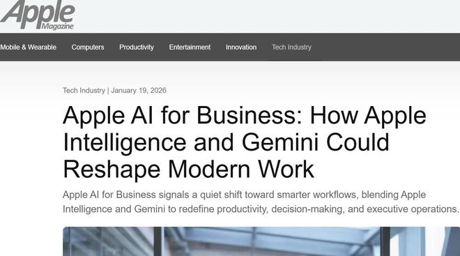 来源:环球网 【环球网科技综合报道】1月20日消息,据applemagazine报道称,苹果公司正通过将 Apple Intelligence 与 Google 的 Gemini 模型深度整合,推动一场静默却深远的企业级人工智能转型。这一战略并非以独立 平台或复杂仪表盘形式呈现,而是将智能能力无缝嵌入用户日常使用的邮件、日历、文档、消息和会议 工具中,重新定义现代企业的生产力、决策流程与运营效率。 与当前主流企业 AI 解决方案强调集中控制和可视化不同,Apple AI for Business 的核心理念是"情境感 知"与"无感增强"。智能功能在用户熟悉的界面中按需激活,基于设备、通信记录、日程安排和文档内 容等上下文自动提供摘要、建议或行动项,而无需改变既有工作习惯。 得益于 Gemini 模型在推理、语言理解和多模态处理方面的强大能力,Apple Intelligence 在企业场景中 的表现显著提升。例如,系统可自动提炼冗长的邮件线程、优化提案语气以适配不同受众、从会议录音 生成结构化纪要,并支持自然语言查询财务趋势或跨团队依赖关系。所有这些操作均优先在设备端完 成,敏感数据仅在必要时通过私有云处理, ...
