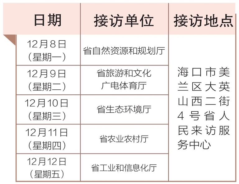 海南省信访工作联席会议成员单位领导12月8日至12日接访日程发布