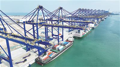 海南日报全媒体记者 陈元才 摄 11月24日,在洋浦区域国际集装箱枢纽港扩建工程(一阶段)二期泊位,多艘集装箱轮船停靠在泊位上 作业。 目前,洋浦区域国际集装箱枢纽港扩建工程(一阶段)二期泊位已经正式投入运营 ,扩建工程一阶段 总计1188米岸线已全面具备靠泊条件,洋浦国际集装箱码头整体作业岸线达到1970米,年通过能力提升 至500万标箱,码头整体能级实现跨越式提升。 ...