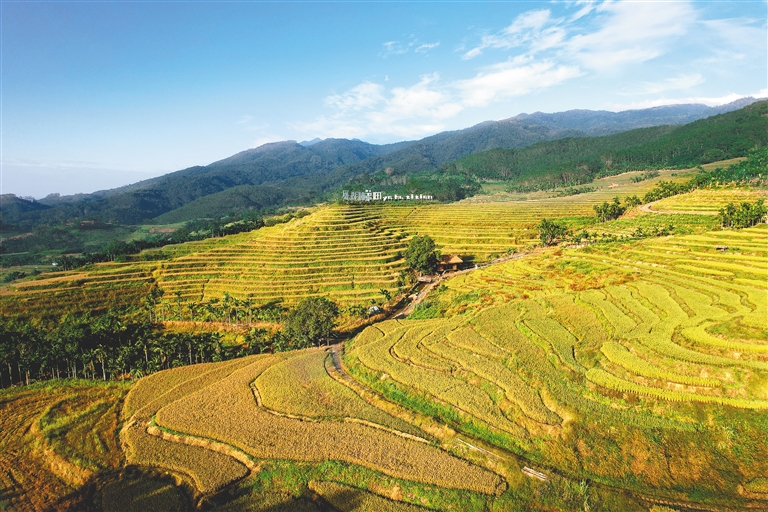 五指山牙胡梯田:稻浪翻滚庆丰收