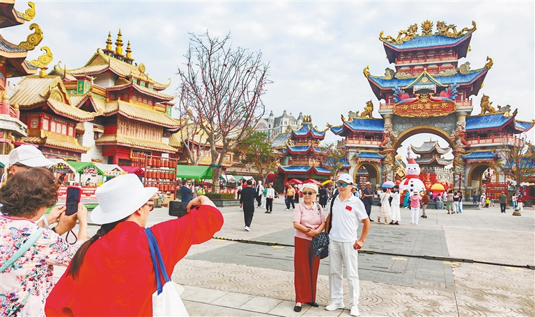 2月17日,大年初一,儋州市海花岛童世界张灯结彩,年味十足,众多市民游客前来游玩,开启新春欢乐 之旅。 图为游客在打卡拍照。记者 陈元才 摄 ...