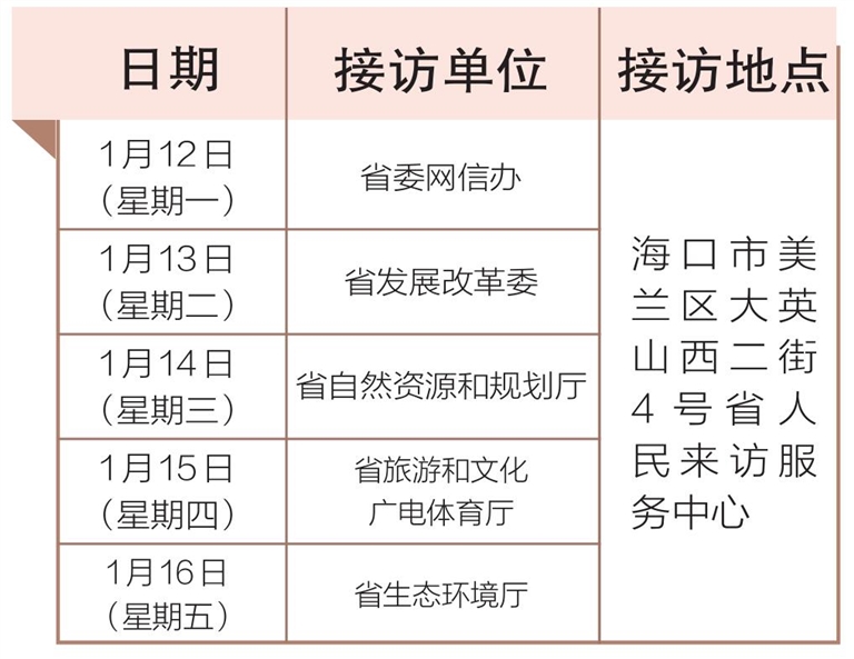 海南省信访工作联席会议成员单位领导1月12日至16日接访日程发布