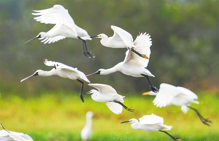黑脸琵鹭 本组图片均由海南日报全媒体记者 陈元才 摄 黑脸琵鹭。 海南日报讯(海南日报全媒体记者 孙慧)近日,由海口畓榃湿地研究所发布的"任鸟飞儋州湾鸟类监测与 巡护"项目2025年水鸟监测报告显示,2025年度儋州湾监测到水鸟63种,隶属于6目11科,其中10种属于国家 重点保护水鸟,含4种国家一级、6种国家二级重点保护物种。 监测数据显示,2025年儋州湾监测到63种水鸟,其中鸻形目物种占水鸟总物种数的63.5%,占水鸟总数 量的88%,显示其类群在儋州湾水鸟群落中占据绝对核心地位,是该区域水鸟群落结构的主导类群。在鸟类 居留型和地理区系中,冬候鸟、古北界占比最高,这一特征不仅反映出儋州湾滨海湿地生境对迁徙鸟类的高 度吸引力,更印证了其在东亚-澳大利西亚候鸟迁徙通道中作为古北界候鸟越冬地的关键地位。 秋冬季为儋州湾水鸟聚集的高峰期,水鸟的种类与数量均处于全年高位;空间分布上,南岸村滩涂、新英 滩涂、新英盐田三个样点的鸟类物种数与数量均为全区域最高,是儋州湾水鸟的核心栖息片区。 2025年度儋州湾水鸟监测共记录到10种国家重点保护水鸟,含4种国家一级、6种国家二级重点保护物 种。同时记录到多种IUCN红色名 ...