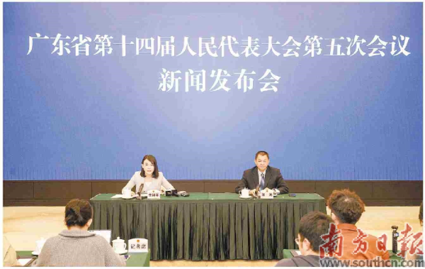 1月20日,省十四届人大五次会议新闻发布会召开。图片来源:南方日报 商务厅等部门主要负责同志出席,回答记者提问。第二场是地市专场记者会,时间为1月28日上午,邀 请广州、深圳、珠海、东莞、惠州市政府主要负责同志出席,回答记者提问。 除驻粤部队代表团外,各代表团还将至少安排1场全体会议或分组会议向媒体开放,代表团开放团组会 议,境内外记者均可旁听,会议结束后,将组织集中采访。 大会议程草案共有八项,分别是:听取和审议广东省人民政府工作报告;审查和批准广东省国民经济和 社会发展第十五个五年规划纲要;审查和批准广东省2025年国民经济和社会发展计划执行情况与2026年 计划草案的报告及2026年国民经济和社会发展计划;审查广东省2025年预算执行情况和2026年预算草案 的报告及2026年预算草案,批准广东省2025年预算执行情况和2026年预算草案的报告及2026年省级预 算;听取和审议广东省人民代表大会常务委员会工作报告;听取和审议广东省高级人民法院工作报告; 听取和审议广东省人民检察院工作报告;其他事项。会议议程草案将经过1月25日上午各代表团会议审 议,提请当天下午召开大会预备会议表决通过。 在现场,大会筹 ...