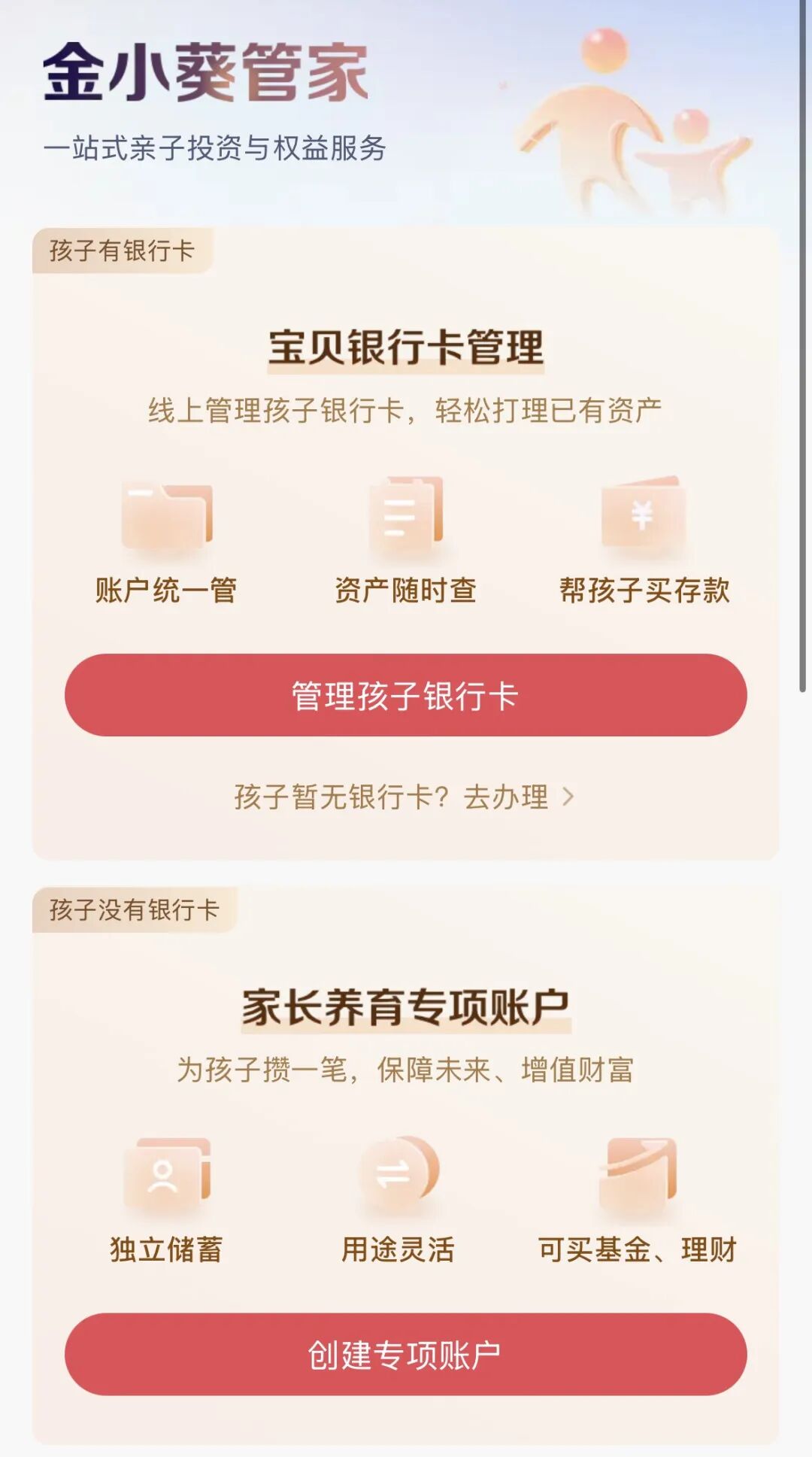 《金融时报》记者采访时发现,春节前后,多家银行密集推出了儿童专属金融产品与服务,以利率上浮、特色权益、亲子共管等方式,竞相争抢"小客 户",深度挖掘儿童金融这片"新蓝海"。 例如,在招商银行(600036)"金小葵管家服务"中,该行一年期存款年化利率为1.3%,两年期存款利率为1.4%,均高于该行普通定期存款利率;华夏银 行"阳光成长计划"为未成年群体提供存款专属服务,旗下的"月成长龙安3年"年利率达1.75%,起存金额仅50元,兼顾灵活性与收益性。 城商行的表现也颇为亮眼,北京银行针对孩子压岁钱推出了特色存款"小京压岁宝",其中,2年期、3年期存款利率分别为1.60%、1.75%,较该行普通定 期存款利率均有不同程度上浮。 "让孩子的压岁钱成为成长路上的第一笔财富,见证宝贝的每一步成长!"2月6日,北京农商银行也推出了"阳光宝贝卡专属储蓄产品",1年期、2年期、3 年期定期存款起存金额均为1000元,年利率分别为1.5%、1.6%、1.75%,而同期限定期存款挂牌利率分别为1.15%、1.2%、1.3%,利率优势显著。 如东农商银行还面向18周岁以下青少年推出了压岁钱定制存单,将1万元起存的一年期存款利率设 ...