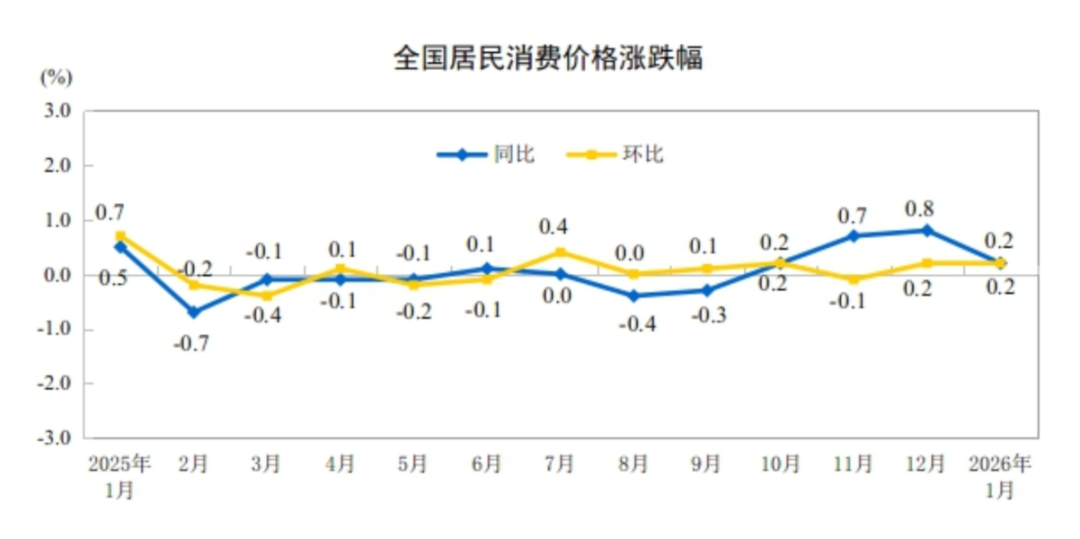 服务价格上涨0.1%,影响CPI同比上涨约0.05个百分点,对CPI同比的上拉影响比上月减少约0.2个百分点。服务中,飞机票、旅行社收费和家政服务价格 分别下降14.3%、7.7%和3.5%,三项合计影响CPI同比下降约0.16个百分点,而上月其对CPI同比影响为上拉约0.04个百分点。 国家统计局2月11日发布的数据显示,1月份,居民消费需求持续恢复,居民消费价格指数(CPI)环比上涨0.2%,同比上涨0.2%,扣除食品和能源价格的 核心CPI同比上涨0.8%;工业生产者出厂价格指数(PPI)环比上涨0.4%,同比下降1.4%。 核心CPI保持温和上涨 1月CPI同比上涨0.2%,涨幅有所回落。对此,国家统计局城市司首席统计师董莉娟认为,主要受春节错月影响。上年1月份为春节月份,食品和部分服务 价格上涨较多,导致上年同期对比基数较高,带动1月同比涨幅回落较多。 图片来源:国家统计局 分类别看,食品价格下降0.7%,影响CPI同比下降约0.11个百分点,而上月对CPI的影响为上拉约0.21个百分点。食品中,鲜菜价格上涨6.9%,涨幅比上月 回落11.3个百分点,对CPI同比的上拉影响比上月回落约0.27个百分 ...