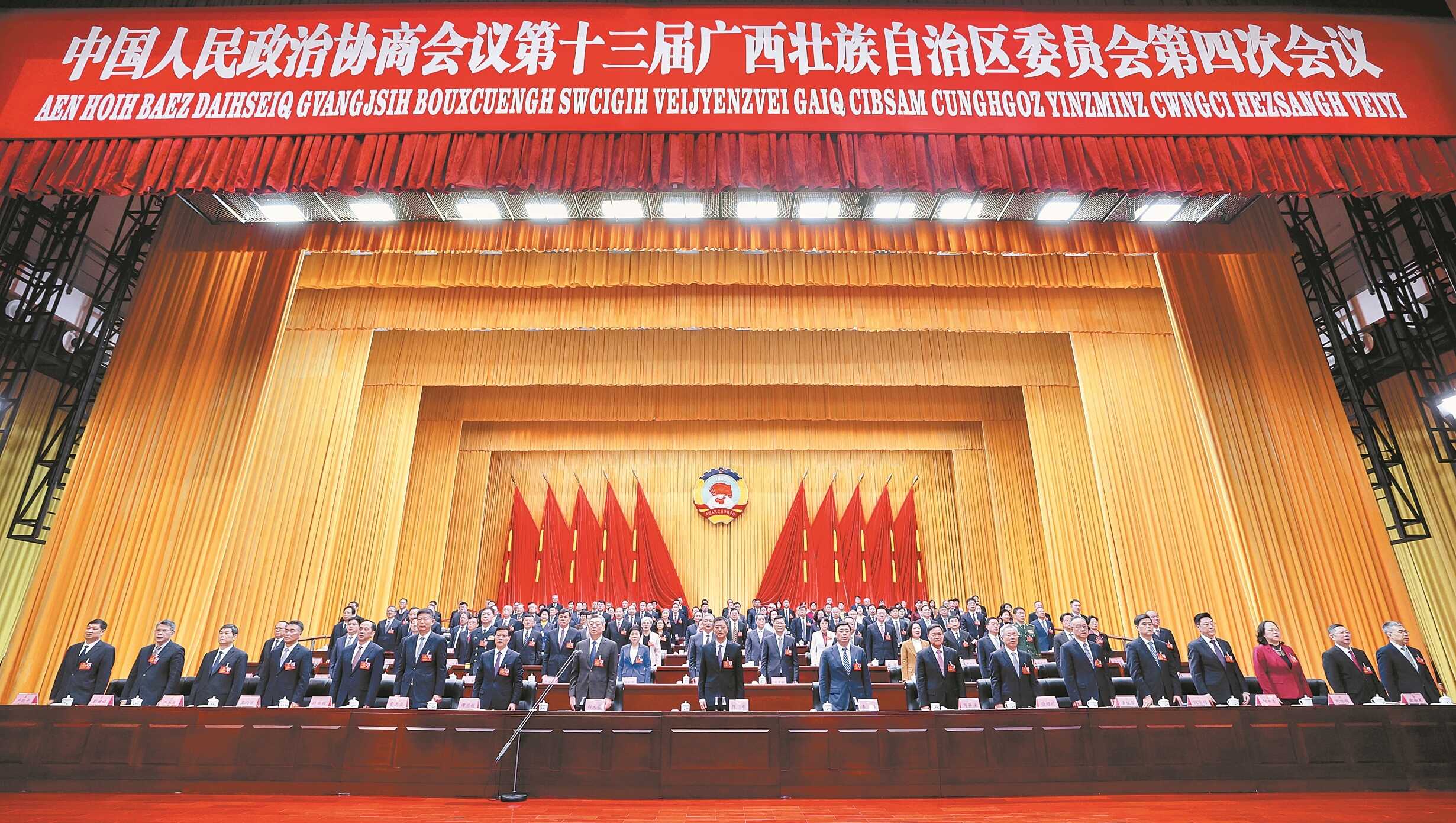 王维平、房灵敏、陈奕君、王心富、许永锞、卢新宁、庄革、苗庆旺,自治区人大常委会、政府领导班子成员,自治区高级法院、检察院主要领导,其 他省级领导在主席台就座。 大会通过了自治区政协十三届四次会议关于常务委员会工作报告的决议;通过了自治区政协十三届四次会议关于政协十三届三次会议以来提案工作情况 报告的决议;通过了十三届自治区政协提案委员会关于政协十三届四次会议提案审查情况的报告;通过了自治区政协2026年协商计划;通过了自治区政协十 三届四次会议政治决议。 2月5日上午,中国人民政治协商会议第十三届广西壮族自治区委员会第四次会议圆满完成大会各项议程后在南宁胜利闭幕。黄克 何学俏 摄 中国人民政治协商会议第十三届广西壮族自治区委员会第四次会议圆满完成大会各项议程后,2月5日上午在南宁胜利闭幕。 会议应出席委员658人,实到606人,符合规定人数。 自治区党委书记陈刚、自治区主席韦韬出席闭幕会。会议由自治区政协主席孙大伟主持。 周异决、谭丕创、徐绍川、费志荣、黄俊华、许显辉、钱学明、王乃学、何辛幸、巫家世、刘咏梅、彭健铭、欧余军及卢能干、黄智宇在主席台前排就 座。 孙大伟表示,踏上"十五五"新征程,人民政协重任在肩 ...
