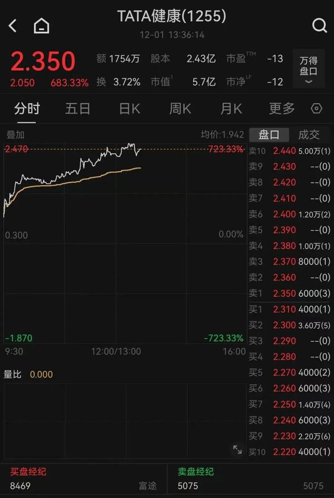 Group 1 - TATA Health's stock resumed trading after more than 1.5 years and surged over 700%, reaching a high of 2.47 HKD per share, with a current price of 2.35 HKD per share and a trading volume exceeding 17 million HKD [1] - The company announced that it has met all resumption guidelines, including publishing all outstanding financial results and addressing any audit revisions [2] - TATA Health confirmed that its business is sustainable, with sufficient operational capacity and valuable assets to support its operations [2]