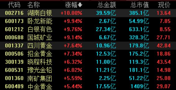A股低开,贵金属板块走强