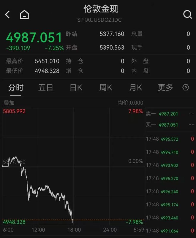 现货黄金跌破5000美元,白银暴跌超17%