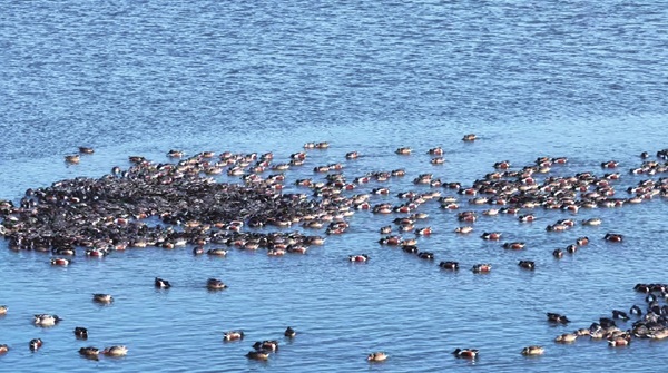 河北沧州南大港湿地:琵嘴鸭上演“生命旋涡”觅食奇观