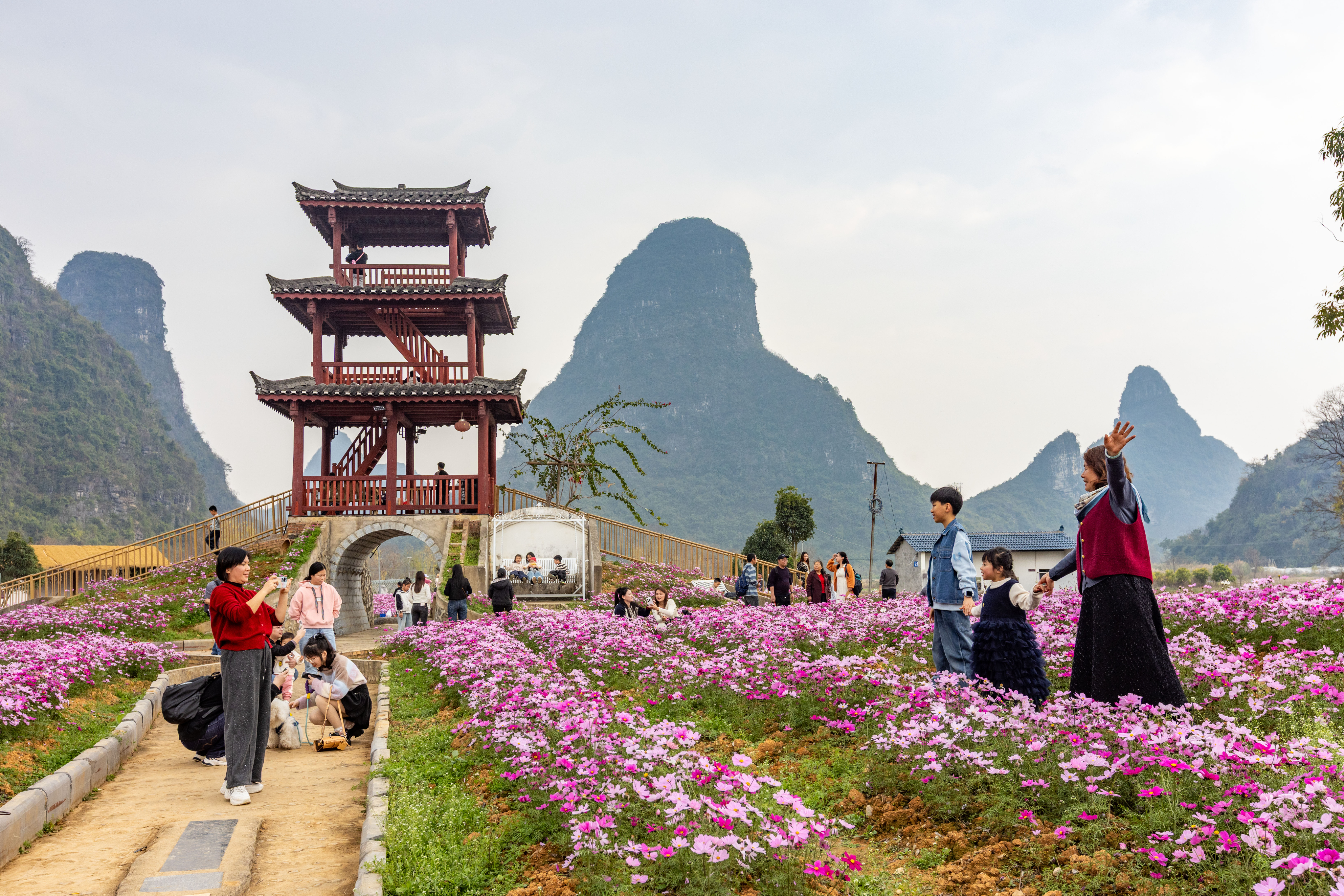 近年来,广西桂林市临桂区会仙镇沐宦头村开展乡村风貌综合整治,打造集观光、体验、度假于一体的旅游新业态,每年接待游客超20万人次。图为1 月18日,众多游客在该村格桑花观赏园内共享生态美。 黄胜林 摄 in N B t I 官 11 48 TS - 2011 1 ...