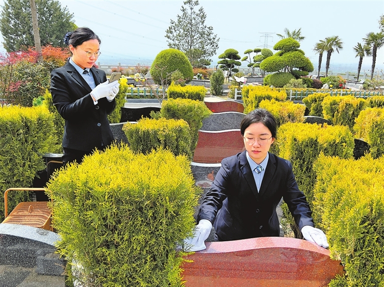 在洛阳市凤凰山生态纪念园,赵柯儿和同事为逝者家属提供代祭扫服务。记者 赵大明 摄 在清明这个"慎终追远、民德归厚"的时节,不少地方文明祭扫蔚然成风:鲜花替代纸钱,丝带承载思念,植 树寄托哀思,云端献花表达追思……而记者近日走访发现,还有一些变化在城乡间悄然发生:家庭追思升格 为集体记忆沙龙,"职业扫墓人"穿行山间代客拭碑献花,AI数字人技术让逝者音容跨越虚实界限……当古老 节气经历现代文明的重塑,"慎终追远"正被诠释出让人耳目一新的时代内涵。 新形式集体追思传承乡风 "多亏父辈们艰苦奋斗,才为现在的生活打下基础。"4月2日下午,在郑州市二七区樱桃沟景区开发管理委员 会黄龙岗社区的梨树园,一场追思会正在举行。10多位中老年人围坐树下,你一言我一语,共同回忆着过往 的点点滴滴。 "过去每年清明节前,村民会在各自的家庭微信群里怀念先辈。"社区党总支部书记黄俊介绍,这让村干部们 产生了"灵感",今年便在村里尝试举行了首次集体追思会。 梨花绽放,暗香浮动。"20世纪70年代,村民自己尝试育苗、嫁接、探索管理经验,建起了这处梨园。"78岁 的"老支书"徐春章说,老一辈白天下地干活儿,晚上回到家还要纺棉花织布,非常辛苦。 ...