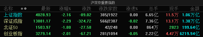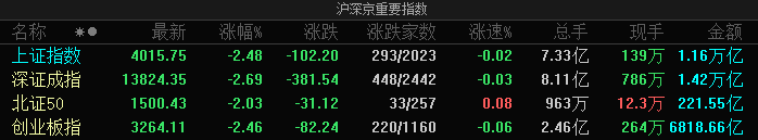 A股全天震荡调整,三大指数均跌超2%,全市场超百股跌停