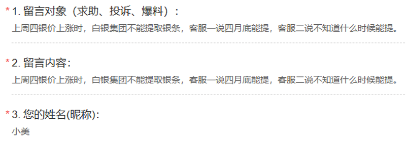 网友投诉白银集团:银价大涨时不能提取银条
