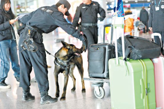 春运期间,首都机场日均客流量接近20万人次,为保证旅客平安出行,首都机场公安分局启动高等级勤 务,每天从早9点到晚9点,在3个客流高峰时段不间断巡逻。马振鑫的步数轻松突破两万,"七夕"也在 高强度的工作中不断调整状态。 犬跟随民警守护旅客出行平安。本报记者甘南 摄 春节假期,首都机场航站楼内客流交织,行李箱滚轮声、旅客交谈声、航班广播声此起彼伏。人群中, 一道移动的藏蓝色风景引人注目——一位女训导员牵着身形矫健的昆明犬"七夕",步伐沉稳地穿梭于值 机区域。 今年是昆明犬规模化投入首都机场春运安保的第一年。而将满一岁的"七夕"正经历着它职业生涯中的首 个春运大考。"百姓过年,警察站岗。我们和警犬,就是这航站楼里的守岁人。"首都机场公安局警犬训 导员马振鑫用指尖轻轻摩挲着爱犬的耳尖,这是她与"七夕"之间独有的默契。 首都机场T3航站楼,警 昆明犬作为我国自主培育的优良警犬品种,嗅觉灵敏,适应力强,尤其适合机场这种气味混杂、人流密 集、噪声纷扰的复杂环境。更重要的是,它们体型较大,能与小巧的史宾格犬形成互补,共同织密机场 的安保网络。 其实,去年初到基地时,"七夕"还很胆小。作为女训导员,马振鑫在训练中倾注了更多的 ...