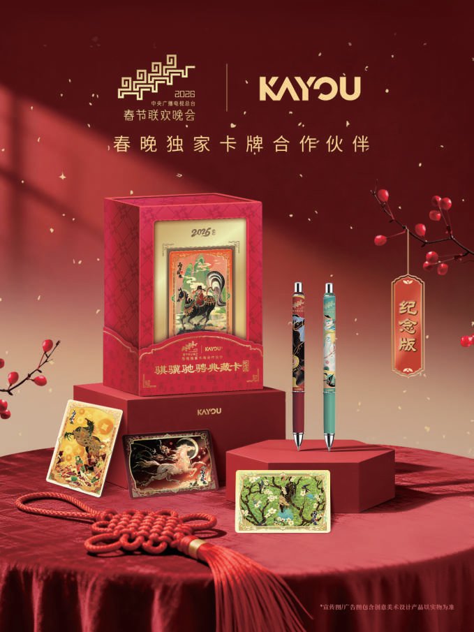 Core Viewpoint - The collaboration between the Central Radio and Television Station and KAYOU marks KAYOU as the exclusive card partner for the 2026 Spring Festival Gala, aiming to blend traditional culture with modern aesthetics and technology, appealing to the younger generation and enhancing cultural connections during the festive season [1][7]. Group 1: Collaboration and Cultural Significance - KAYOU's partnership with the Spring Festival Gala is a significant step in merging traditional cultural elements with contemporary trends, creating a unique cultural experience for the audience [1][7]. - The collaboration will feature a series of collectible cards that embody auspicious meanings and showcase modern aesthetics, enhancing the cultural experience of the Spring Festival [1][3]. Group 2: Product Offering and Cultural Heritage - The KAYOU collectible card set includes eight themed cards that reflect classic poetry, historical artifacts, and traditional aesthetics, creating a micro art epic that spans thousands of years of cultural memory [4][6]. - Each card in the collection is designed to convey deep cultural meanings and emotional values, allowing consumers to appreciate the rich heritage behind the products [3][6]. Group 3: Innovation and Market Strategy - KAYOU has developed a diverse IP ecosystem that includes cards, stationery, and plush toys, driven by a dual focus on culture and technology, which enhances the appeal to younger consumers [7][8]. - The company has established partnerships with nearly 70 well-known IPs, with over 40% being domestic cultural IPs, indicating a strong market presence and ongoing expansion [7][8]. Group 4: Global Expansion and Cultural Promotion - KAYOU is actively pursuing global expansion by establishing subsidiaries in various countries, aiming to introduce Chinese cultural products to a wider audience [9]. - The company seeks to break cultural and language barriers through lightweight cultural products, allowing global consumers to experience the charm of Chinese culture [9].