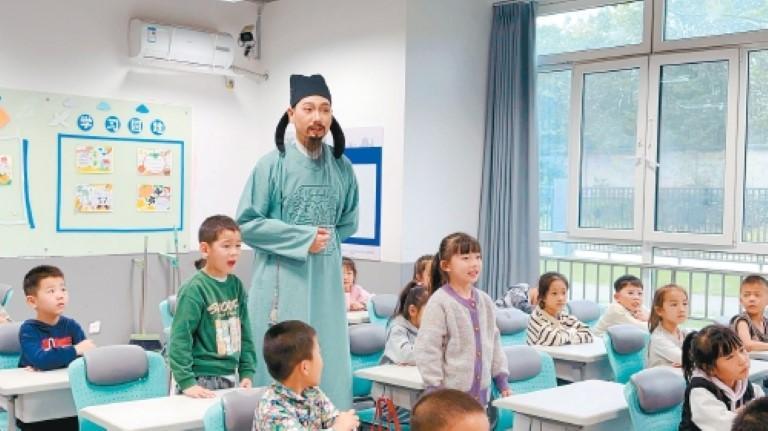 西安长安万科城小学学生绘制的"跟着杜甫去旅行"手抄报。(图片均由学校提供) 长安区第十二小学的学生们跟着"李白"一起读唐诗。 "跟着诗人游河山" 画作里走出跨越千年的"诗旅" 当"诗仙李白"身着古装"穿越"进西安校园,当李白笔下的"长安一片月"化作脚下可寻的"旅行路线",一 场场让唐诗"活"起来的文化体验活动,正在西安多所小学热闹上演。 孩子们跟着"李白"朗读诗歌,循着诗圣的足迹"畅游河山",在互动游戏、情景演绎与文化讲座中解锁千 年诗意,让唐诗探索之旅满是童趣与温度。 "李白带我读唐诗" 课堂上诗仙"走"出课本 "李白乘舟将欲行,忽闻岸上踏歌声……"近日,长安区第十二小学的教室里,稚嫩却激昂的吟诵声此起 彼伏,一场以"诗道终南心意长安"为主题的唐诗教学活动热闹开启。"李白带我读唐诗"环节中,语文教师惠 文佳身着宽袖长袍,衣袂翻飞间化身"诗仙李白"立于讲台,瞬间将孩子们带入盛唐氛围。 "大家知道'桃花潭水深千尺'里,李白和汪伦是怎么相识的吗?"每当孩子们朗朗诵出一句诗,"李白"便顺 势铺开背后的典故,把课本上冰冷的文字,变成了有画面、有情绪的故事。在"李白"的引领下,孩子们跟 读"仰天大笑出门去,我辈岂是蓬蒿 ...