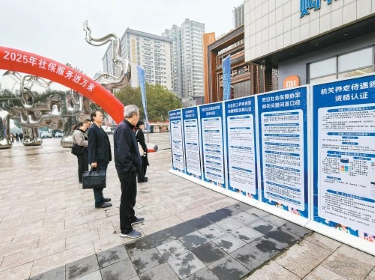 本报讯(记者王涛)10月23日,西安市2025年"社保服务进万家"启动仪式在新城区益田假日世界广场举 行。本场活动由西安市人力资源和社会保障局主办,西安市医疗保障局、西安市养老保险经办处,西安市新 城区、碑林区、蓝田县人力资源和社会保障局协办。 "社保服务进万家"活动,既是密切联系群众的务实之策,也是完善覆盖全民社会保障体系的创新之举, 更是践行以人民为中心的发展思想的改革之措。本次活动以"高质量参保智慧化服务"为主题,旨在进一步扩 大社会保险政策知晓度与覆盖面,提升社保经办服务的便捷性与精准性。市人社局、市医保局、市养老保险 经办处相关负责人,各区县、西咸新区、各开发区人社部门负责人,参保企业、群众等800余人参加活动,现 场发放宣传册5000余份。 在失业、工伤保险经办服务方面,全市持续推进各项工作,全市失业、工伤保险参保人数分别达337万 人、374万人,累计为13万人发放失业、工伤保险待遇超17亿元,稳稳撑起了社会保险"守护伞"。 市民通过活动现场设置的广告牌了解相关社保服务。(记者王涛摄) "西安市目前参保人数达到了1114万,全市的医保经办机构有20个,为了实现家门口的医保便捷服务,我 们将高频事 ...