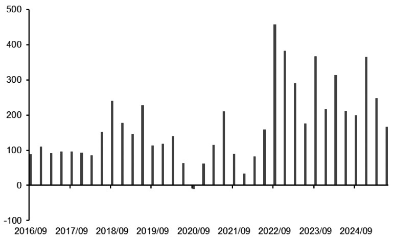 短期仍需警惕调整风险 美国经济不确定性加大,美联储降息预期升温,实际利率趋于下行。在美国宏观经济放缓、货币政策宽松以 及地缘局势等因素支撑下,贵金属或长期维持偏多思路。 国际金价自2025年4月22日盘中触及3500美元/盎司的阶段高点后,进入长达四个月的横盘整理,8月下旬再度 迎来上涨,且呈加速态势,10月17日站上4300美元/盎司的历史新高。2025年以来,纽约金和伦敦金涨幅均已 超过60%。 黄金需求强劲 黄金作为全球通用的一般等价物,当外汇储备不足或者被限制使用时,黄金可直接用于国际贸易的支付和债 务兑付等。近两年,各国央行一直在购买黄金。以中国为例,自2022年11月以来,中国人民银行已连续18个 月增加黄金储备,合计增持规模为1016万盎司。2024年5月末,中国央行在连续购入黄金一年半之后,第一次 按下"暂停键"。值得关注的是,2024年11月中国央行再度增持黄金储备,这意味着央行时隔半年再度增持黄 金。截至2025年9月末,中国黄金储备为7406万盎司,环比增加4万盎司,连续11个月增加。 世界黄金协会公布的数据显示,2025年二季度全球黄金总需求(含场外交易投资)同比增长3%,至1249吨 ...