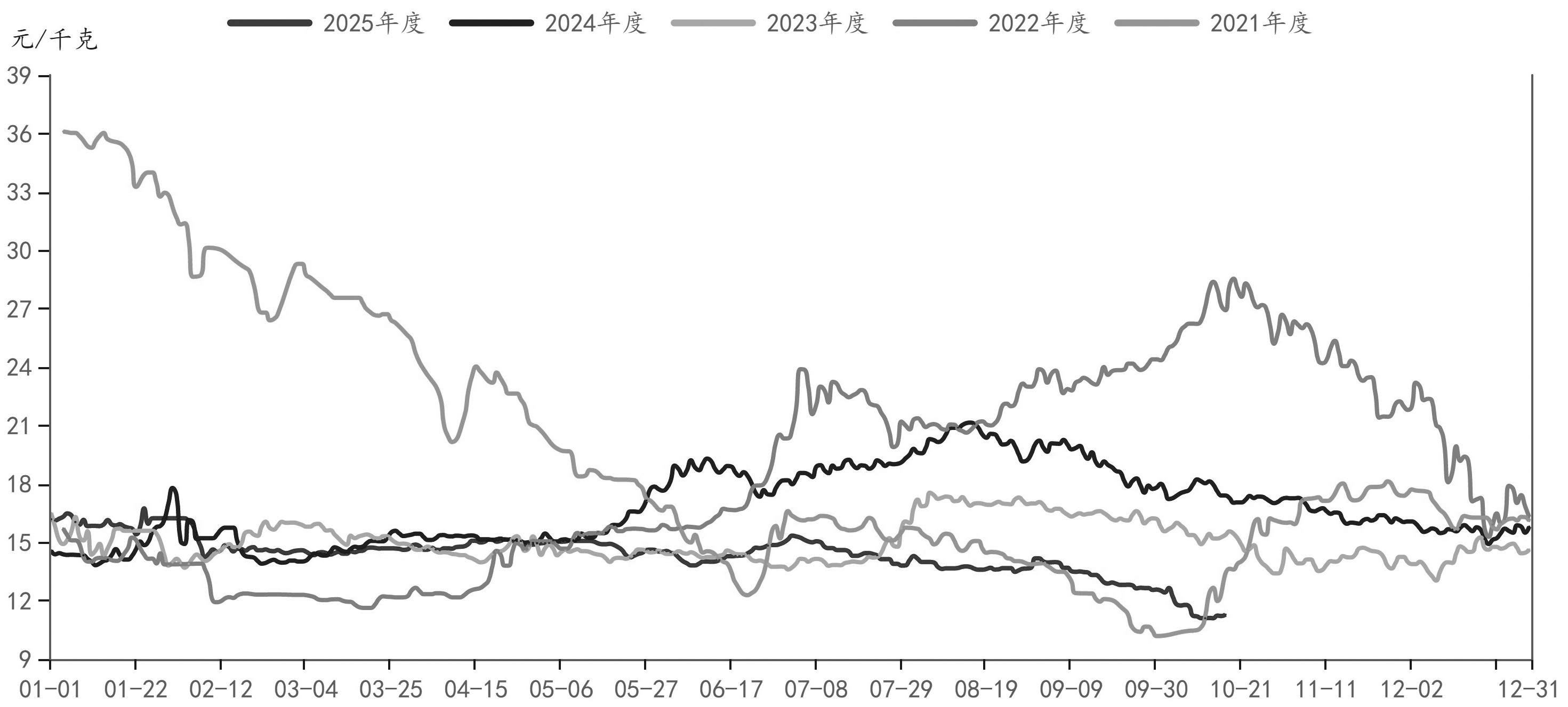国庆节假期期间,全国生猪需求整体呈现"旺季不旺"态势,主流成交价在11.0~12.2元/千克,川渝地区甚至跌破11元/千克。 国庆节假期后,生猪市场供应压力难以缓解,需求疲软已成定局,供需矛盾加剧。据我的农产品网数据,10月20日,全国生猪出栏均价为10.95元/千克, 同比下跌38.96%,低价区报9.80元/千克。 图为河南生猪现货价格走势 期货方面,国庆节假期后,生猪期货价格低开低走,增仓下探,主力合约在10月13日最低触及11120元/吨,创上市以来新低。近期生猪期货成交量与跌幅 同步扩大,表明市场对后续供需格局的悲观情绪进一步释放。当前生猪期现货价格共振下跌的行情并非单一因素主导,而是供应过剩、政策调控落地滞后、 消费疲软三重压力叠加所致,目前行业面临短期价格承压与长期产能出清的博弈。 政策传导落地尚需时日 此前,农业农村部频频召开推动生猪产业高质量发展座谈会,针对生猪产业发展提出了多方面重要举措,建议企业合理淘汰能繁母猪,适当调减能繁母猪存 栏量,减少二次育肥,控制肥猪出栏体重,严控新增产能。国家发展改革委和农业农村部于9月16日召开生猪产能调控企业座谈会,这是年内第3次涉生猪领 域的重要调控会议 ...