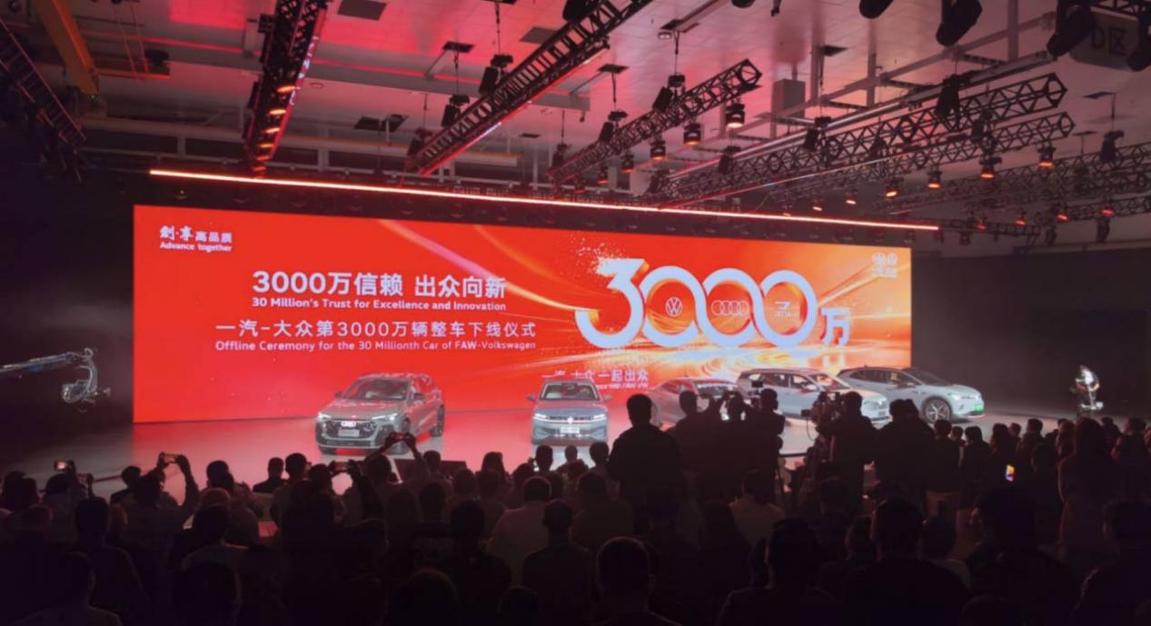 10月30日,随着一辆一汽奥迪A5L领航版缓缓驶下长春基地生产线,一汽-大众迎来第3000万辆整车下线的历史性时刻。从1991年第一辆捷达A2轿车下线, 到如今成为产销突破3000万辆的行业巨头,一汽-大众用34年时间书写了中国汽车工业的传奇篇章,见证了中国汽车产业从追赶到并跑、再到领跑的时代变 迁。 一汽-大众第3000万辆整车——一汽奥迪A5L领航版在长春基地正式下线 3000万辆,这一数字不仅代表着企业自身的成长,更是中国汽车工业发展的重要里程碑。从1991年成立至今,一汽-大众走过34年,逐步从单一品牌单一车 型拓展出覆盖主流、豪华与经济型市场的三大品牌30余款车型矩阵。这一加速增长的轨迹,也展现了中国汽车工业的惊人发展速度。 林敢为在发言中深情回顾了企业从合资筹建到稳健发展的奋斗历程,回忆了企业从无到有、由小到大的艰辛与荣耀,为见证企业跨越3000万辆的重要时刻感 到欣慰和自豪,希望一汽-大众在新的起点实现新的突破、创造新的辉煌。 站在3000万辆崭新起点,一汽-大众将以新发展理念引领高质量发展,加快转型升级,全力将一汽-大众建设成为新时代高质量发展和高水平对外开放新标 杆。 仪式现场,陈彬总结了一 ...