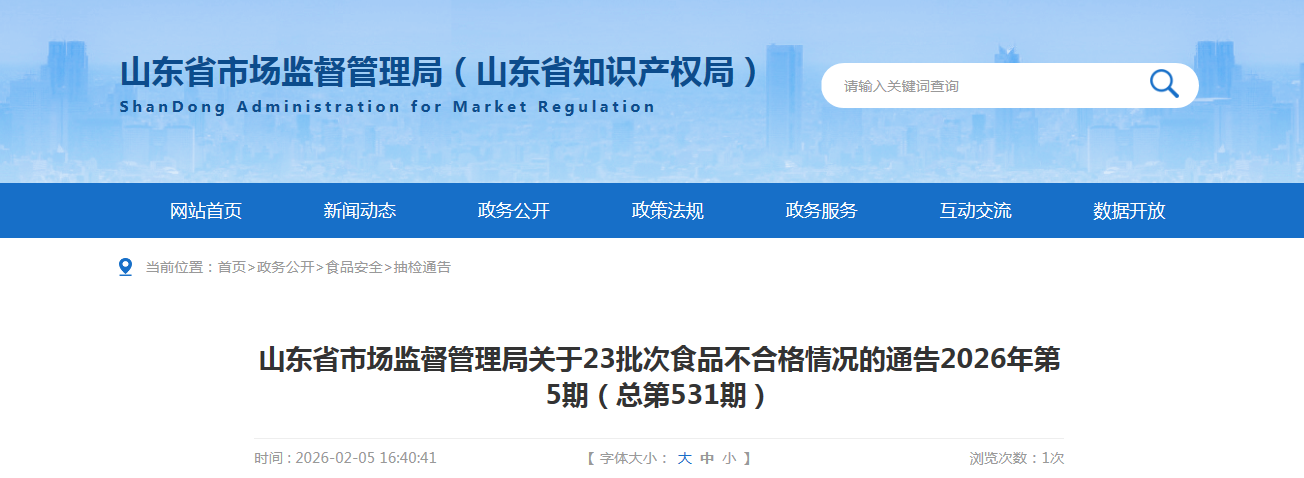 山东省市场监督管理局关于23批次食品不合格情况的通告(2026年第5期)