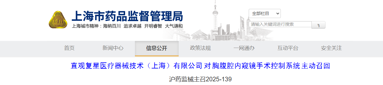 直观复星医疗器械技术(上海)有限公司对胸腹腔内窥镜手术控制系统主动召回