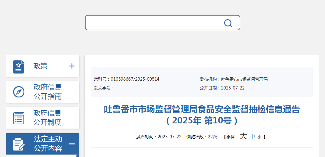 新疆吐鲁番市市场监督管理局食品安全监督抽检信息通告(2025年 第10号)