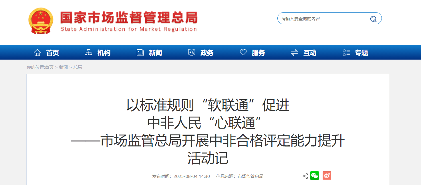 以标准规则“软联通”促进中非人民“心联通”——市场监管总局开展中非合格评定能力提升活动记