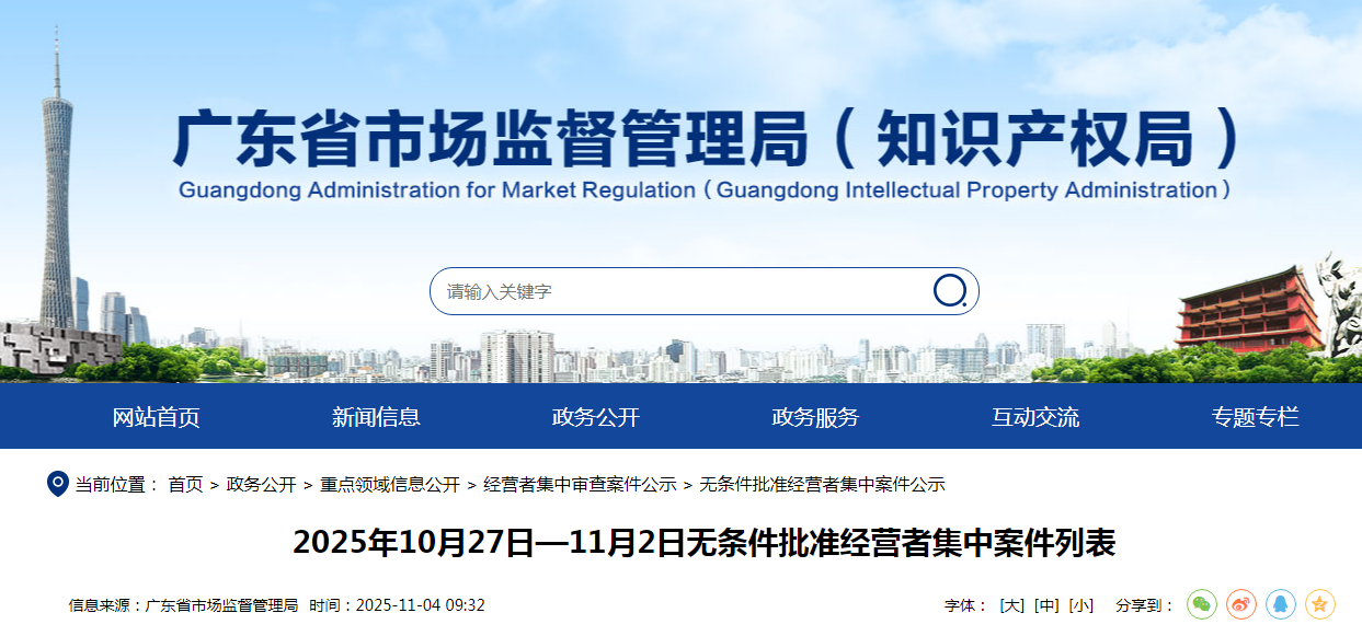2025年10月27日—11月2日无条件批准经营者集中案件列表