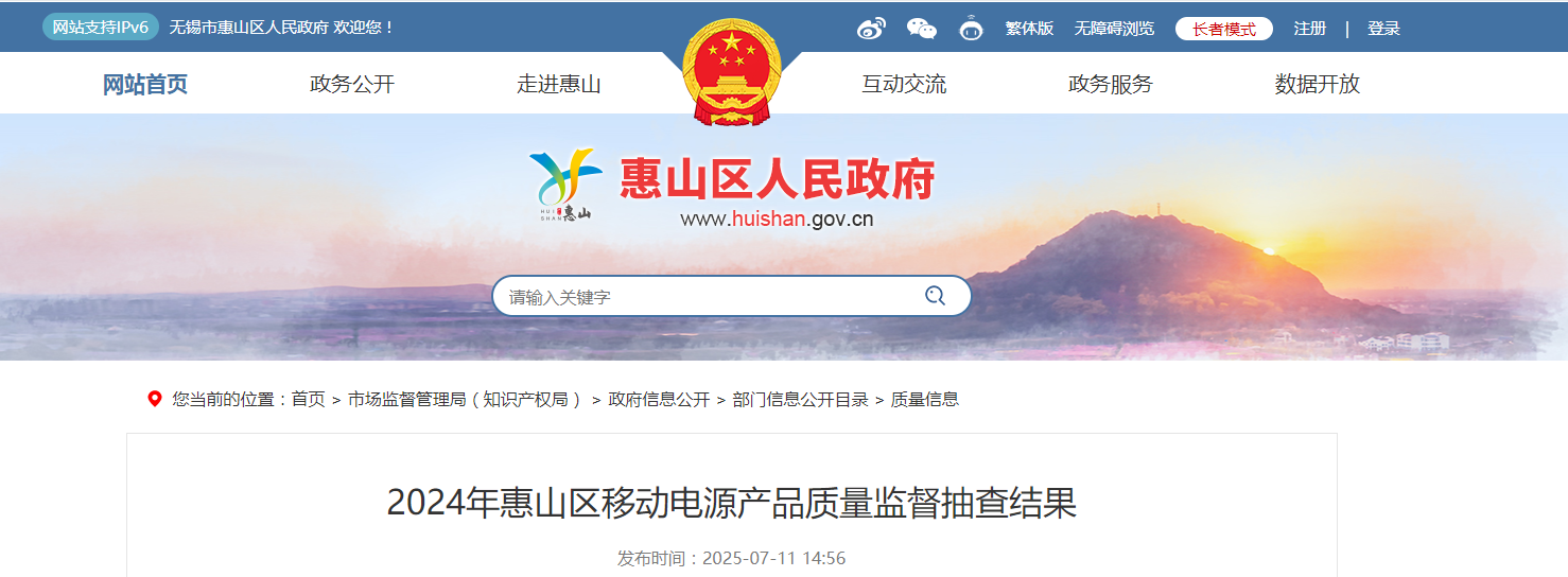 2024年江苏省无锡市惠山区移动电源产品质量监督抽查结果发布