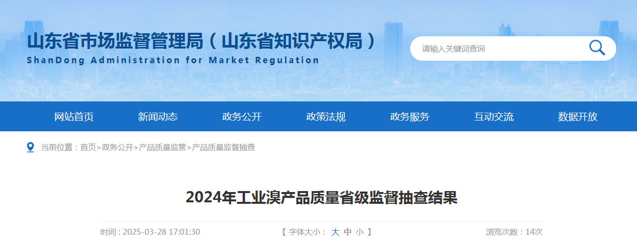 山东省市场监管局公布2024年工业溴产品质量省级监督抽查结果