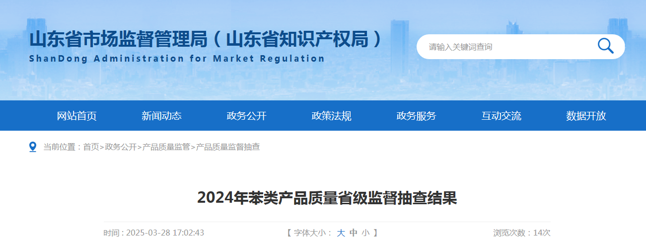 山东省市场监管局公布2024年苯类产品质量省级监督抽查结果