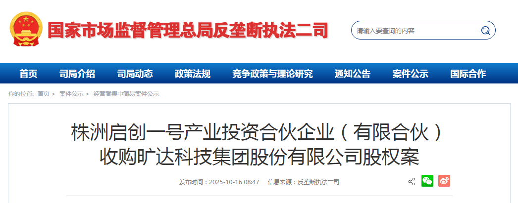 2025年10月9日-10月12日无条件批准经营者集中案件列表