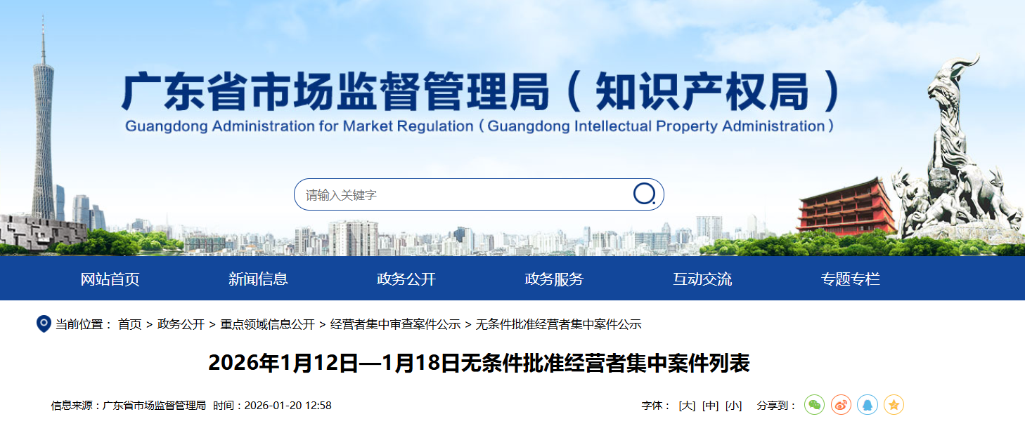 2026年1月12日—1月18日无条件批准经营者集中案件列表