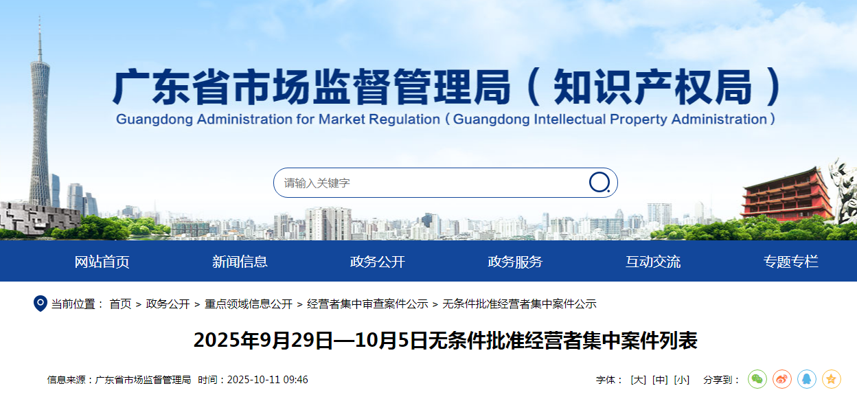 2025年9月29日—10月5日无条件批准经营者集中案件列表