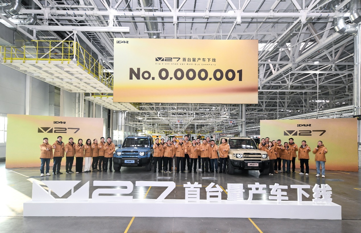 零百加速5秒级 奇瑞iCAR V27首台量产车下线