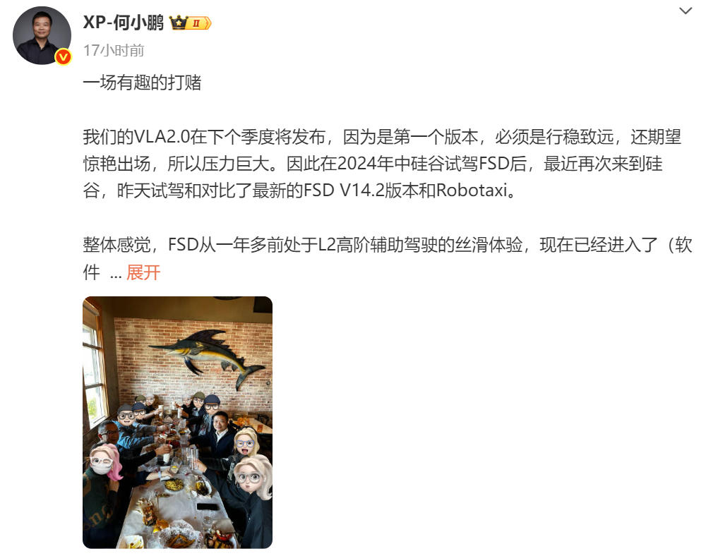 颠覆传统架构 小鹏汽车VLA2.0将于2026年一季度发布