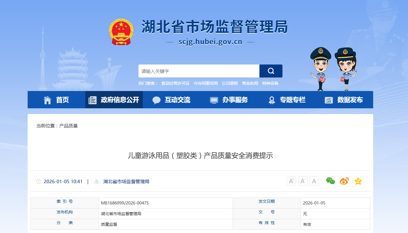 湖北省市场监管局发布儿童游泳用品(塑胶类)产品质量安全消费提示