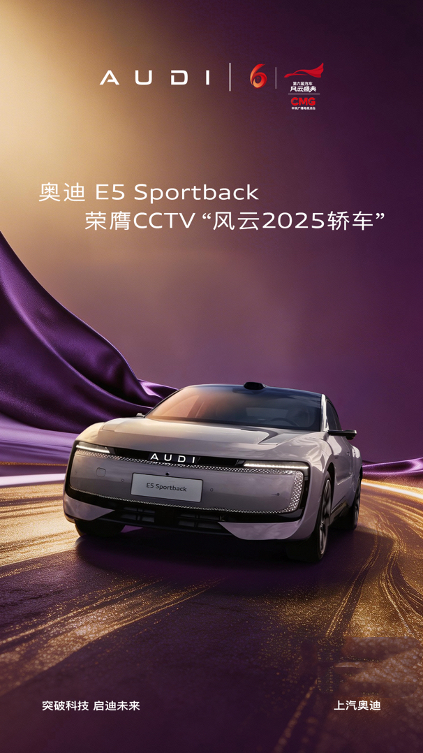 奥迪 E5 Sportback荣膺 第六届《汽车风云盛典》风云2025轿车