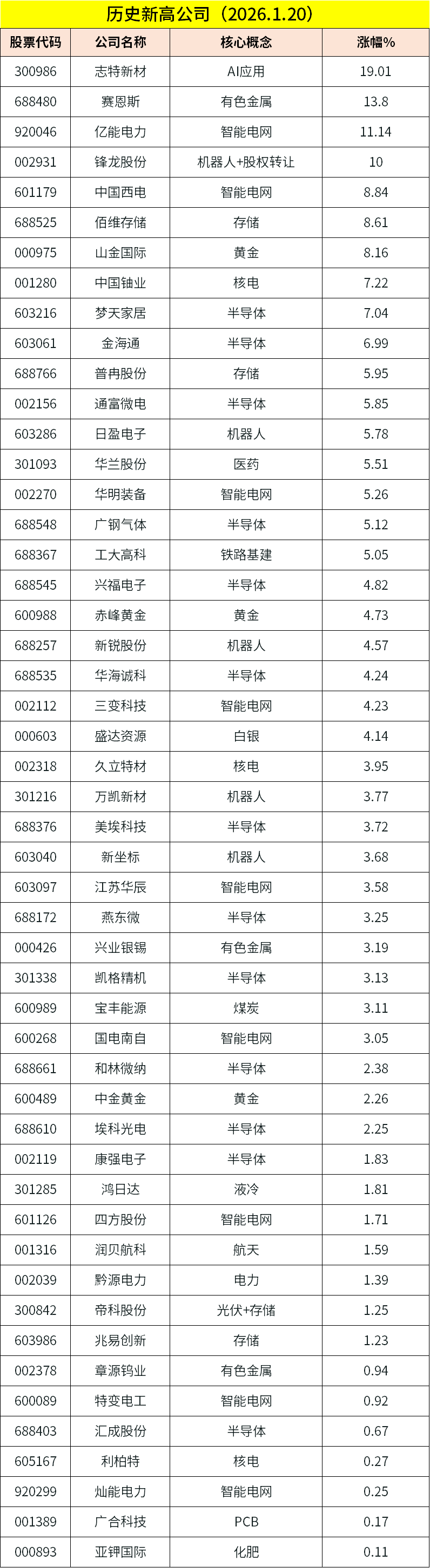 1月21日主题复盘 | 黄金股大涨,CPU概念发酵,机器人板块持续活跃