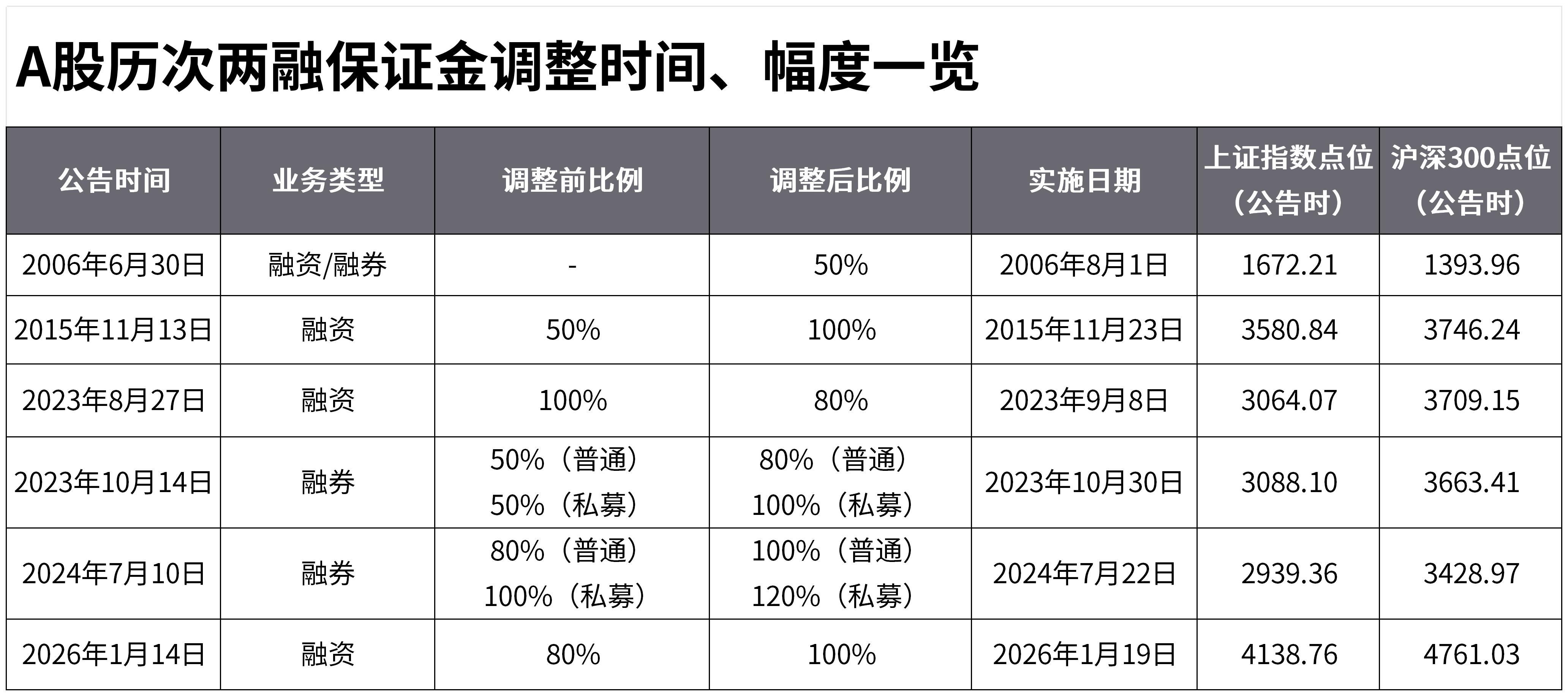 A股历次两融保证金调整时间、幅度一览