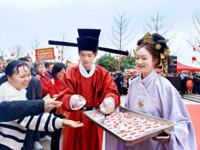 市民游客体验"九大碗"美食。广汉市 委宣传部供图 2月25日,正月初九,德阳广汉市连山镇沙田村,传统民俗活动"九大碗"再度热闹启幕,八方乡里、四 海宾朋齐聚沙田村红堰广场和九大碗广场,共赴一场坝坝宴民俗盛会,在鲜香滋味与欢声笑语中感受马 年新春的团圆暖意,体验独具特色的乡村民俗风情。 沙田村"九大碗"是当地流传已久的民俗宴席,因最初每席设九碗菜,有九九长寿、天长地久等美好寓 意,"吃九大碗"的习俗一直沿传至今。随着群众生活水平的提升,如今的"九大碗"早已突破九碗菜的传 统规制,菜品愈发精致丰富,成为连山乡村文化与美食文化的重要符号。 当天上午,随着热闹欢快的文艺汇演,"九大碗"活动正式拉开帷幕。 本次"九大碗"民俗活动席开166桌,其中红堰广场设112桌、九大碗广场设54桌,宴席菜品精心搭配、鲜 香兼备,由"鸿运当头""招财进宝""五谷丰登""年年有余""蒸蒸日上""节节高升"等十四道寓意吉祥的特 色佳肴组成,每一道菜都承载着美好的祝福。大家围坐在一起谈笑风生,品味着美食佳肴,感受着团圆 温情,一派热闹祥和的新春景象。 孔继红 华西都市报-封面新闻记者 伍勇 "第一次见到这种阵仗!"重庆游客张先生当天恰好和朋 ...