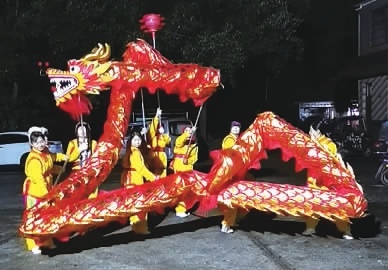 "我们舞龙队的队员都是跳广场舞的舞友,组队前也没想过自己会去学舞龙。"何国辉擦了擦额角的汗 水,笑着介绍起队伍组建的契机。这支女子舞龙队的诞生,源于县级非遗项目——竹马代表性传承人周 松林的心愿,年过七旬的老人虽传承竹马技艺,却想组建一支舞龙队,镇上原有的舞龙队早已解散,他 找到了喜欢组织村民开展文体活动的何国辉。 "周师傅找到我时,我既惊喜又忐忑。"何国辉告诉记者,"队员们全是零基础,连舞龙道具都没碰过。 好在姐妹们都积极响应,报名踊跃。"何国辉召集了跳广场舞认识的12位好友,于1月15日正式组建了女 子舞龙队。 2月24日,夕阳西下,余晖洒满长沙县安沙镇龙华岭村村部外的草坪,一阵清脆的锣鼓声随风而起。13 名身着整齐服装的舞龙队队员手持龙杆,伴随着欢快的节奏舞动,红色的龙身在暮色中灵动翻飞,蜿蜒 游走。 没有专业老师指导,队员们就跟着短视频自学;没有系统教程,就逐帧模仿、反复琢磨;龙身沉重、动 作不协调,舞龙队每晚雷打不动训练两个半小时。 "刚开始练的时候,龙头重得抬不起来,动作东倒西歪。"何国辉笑着回忆,"练'首尾相衔'的动作时,因 为一个队员站错位置,龙身缠成'麻花',大家没气馁,而是笑着拆解动作,反 ...