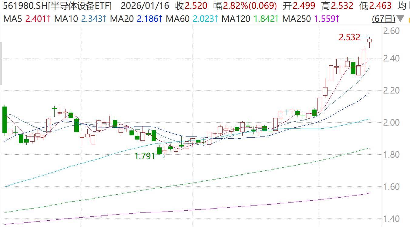 这一信号被市场解读为,芯片制造商正从人工智能热潮中显著获益,并且龙头公司对人工智能产业持续扩张抱有坚定信心。 信达证券指出,台积电作为全球算力芯片核心代工龙头,其积极的指引一定程度上印证了全球AI需求的真实性和持续性,且台积电的扩产有利于将景气度 传导至上游设备和材料环节。 根据Trendforce报道,AIServer、Edge AI等终端应用算力与功耗提升,刺激电源管理所需Power相关IC需求持续成长,成为支撑全年八英寸产能利用率的关 键。 台积电的超预期财报展望为2026年全球半导体产能扩张带来强有力提振,近期全球多地半导体产业链纷纷拉升,A股、美股、荷兰多家设备厂商创新高。截 至上周五,国产半导体设备龙头中微公司、北方华创、长川科技等分别创不同阶段新高。 半导体设备ETF(561980)跟踪中证半导,对以上龙头设备厂商均有布局,上周五获得资金大幅净流入超2亿元,规模、净值均创新高,最新规模突破35亿 元。数据显示,其标的指数中证半导自2026年开年至今已累计上涨超23%,权重中"设备"含量高达61%,前十大集中度近80%。 【AI带动需求强劲,台积电拟大幅投资扩产】 台积电上周四公布的财报显示,20 ...