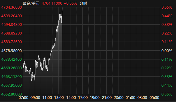 据Choice数据,1月20日,国际现货黄金盘中拉升,截至13:35报4704.11美元/盎司,涨0.55%。 上证报中国证券网讯 据Choice数据,1月20日,国际现货黄金盘中拉升,截至13:35报4704.11美元/盎 司,涨0.55%。 ...