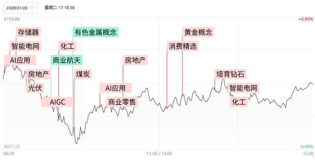 智通财经1月20日讯,今日54股涨停,15股炸板,封板率为78%,锋龙股份15连板,汉缆股份、森源电 气、广电电气3连板,嘉美包装23天16板,新联电子4天3板,九鼎新材5天3板,北交所美邦科技30cm首 板。三大指数集体收跌,创业板指一度跌超2%。沪深两市成交额2.78万亿,较上一个交易日放量694 亿。盘面上,全市场超3100只个股下跌。板块方面,化工、贵金属、房地产板块领涨;算力硬件、商业 航天等板块跌幅居前。截至收盘,沪指跌0.01%,深成指跌0.97%,创业板指跌1.79%。 人气及连板股分析 连板晋级率36.36%,除去晋级15连板的锋龙股份外,自然板高度降至3只3连板个股。随着20厘米人气 股易点天下今日复牌全天封死一字跌停,高位股方向再遭重创,神剑股份、国晟科技遭遇4连跌停,复 牌后连续两日上演"地天板"实现晋级的ST板块人气股*ST铖昌盘中也遭遇"天地板",昨日上演"地天 板"的华夏幸福今日也以T字板封死跌停。不过北证50指数近期加速下行的同时,北交所方向小市值品 种情绪持续回暖,北证化工股美邦科技午后涨停,昨日涨停的亿能电力午后一度涨超27%。整体来看, 短线情绪已经在弹性方向率先企稳,而 ...